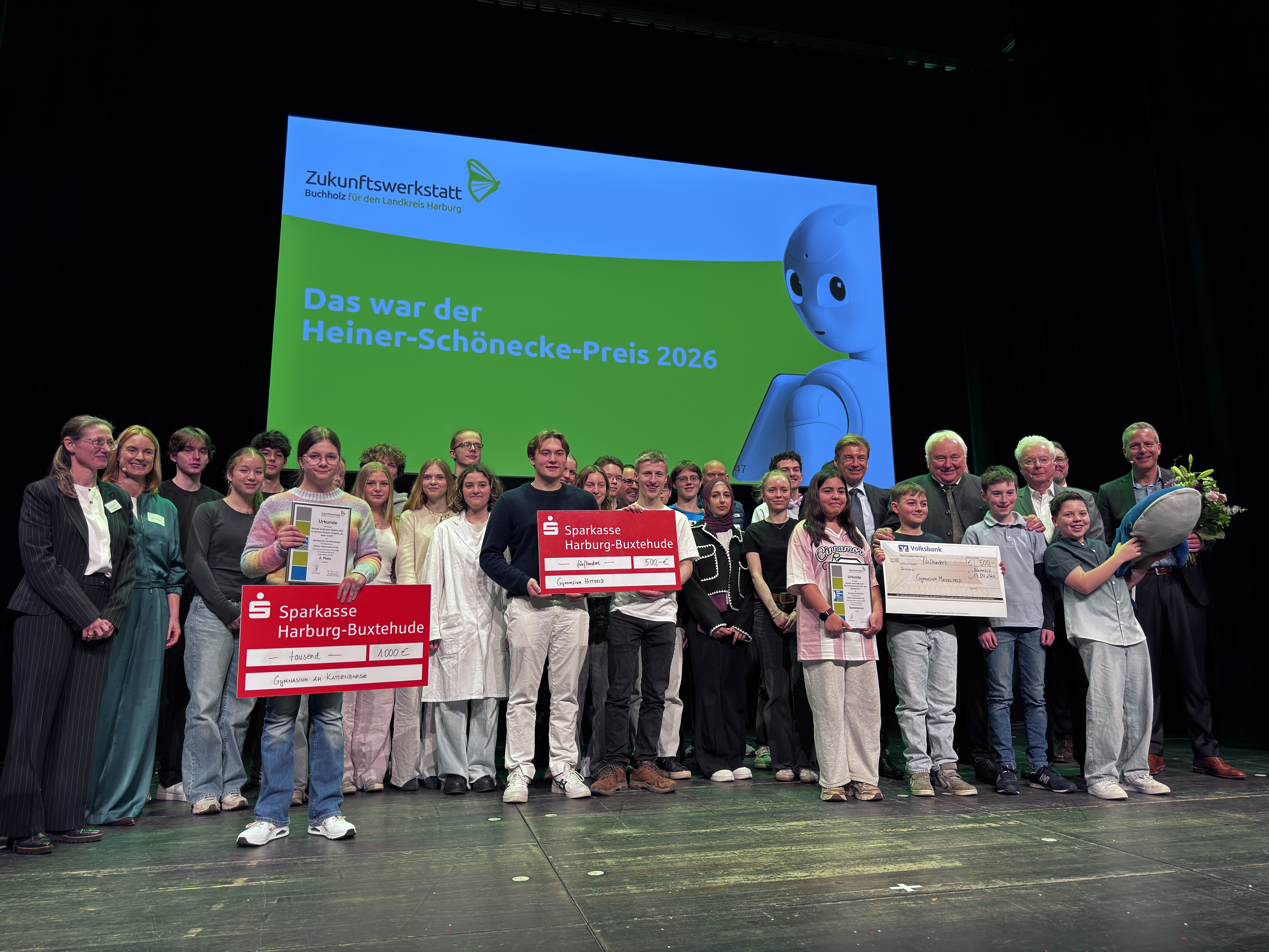 Buchholz in der Nordheide, 17. April 2026 – Rund 100 Gäste und 100 Schülerinnen und Schüler folgten der Einladung in die Empore Buchholz, um die Verleihung des Heiner-Schönecke-Preises 2026 zu feiern. In besonderem Rahmen – anlässlich des 80. Geburtstags des Namensgebers – stand die diesjährige Veranstaltung unter dem Motto: „MINT mal anders – ein Science Slam“. Durch das Programm führte Christoph Reise.