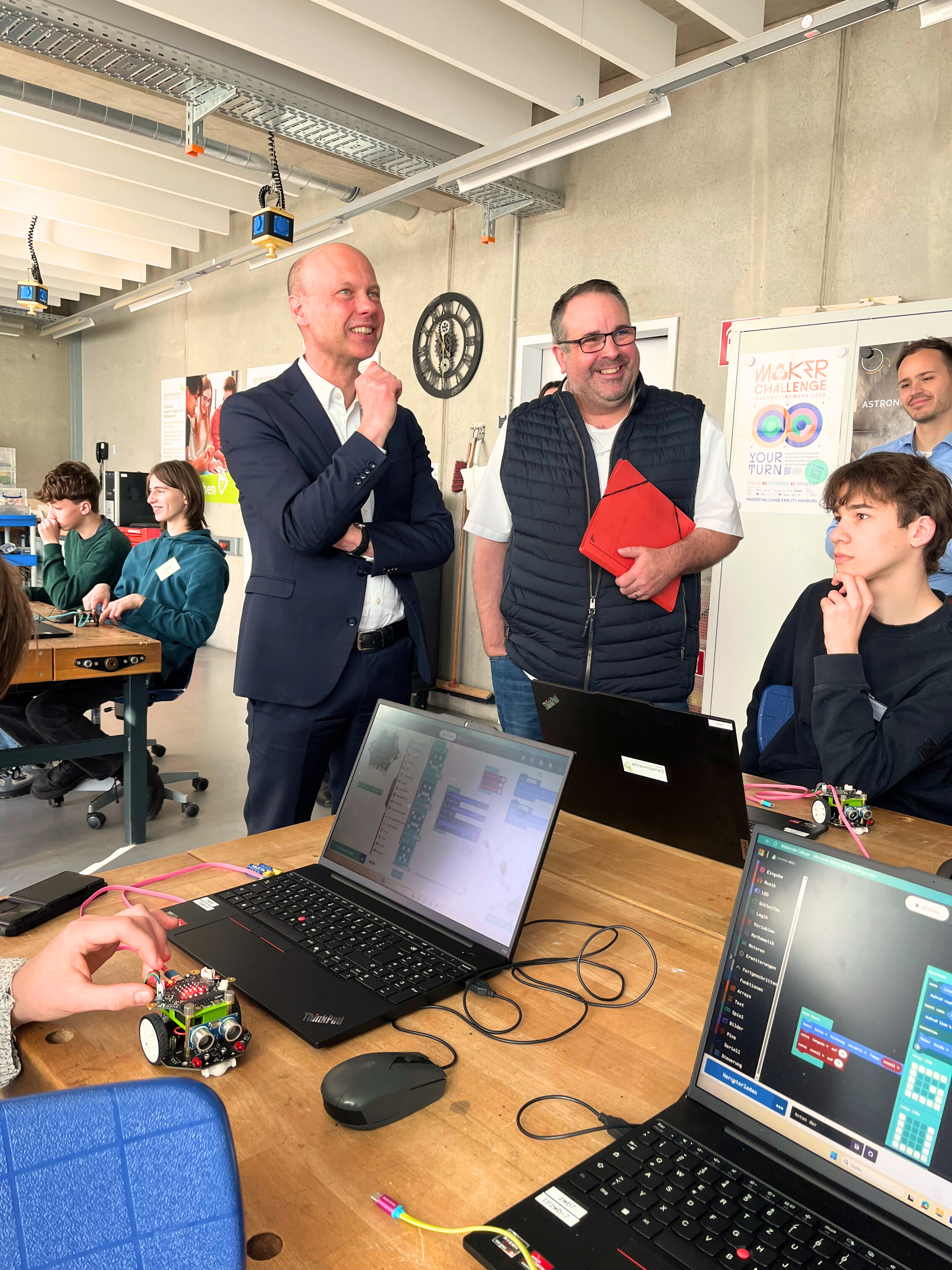 Während des Termins erhielten die Besucher Einblicke in verschiedene Bildungsangebote, die gezielt darauf ausgerichtet sind, junge Menschen frühzeitig für Berufe in den Bereichen Mathematik, Informatik, Naturwissenschaften und Technik zu begeistern. Im Mittelpunkt standen dabei praxisnahe Formate, die theoretisches Wissen mit konkreter Anwendung verbinden.